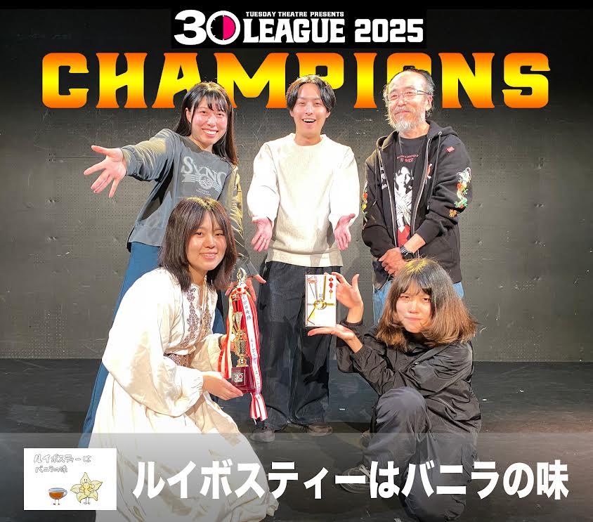 一昨年の30リーグ2023からユニット名をマイナーチェンジして挑んだ今回は、団体の持ち味であるハートウォーミングなホームコメディをベースに、2023年の経験を生かした『30リーグで勝つためのアイデア』が随所に感じられる2作品を披露。残念ながら1勝1敗で決勝進出を逃すという一昨年と同じ結果となってしまったが、常に一定のクオリティの作品を提供し続ける安定感は流石であった。個人的にあと少し作品を突き詰める事が出来れば、文句なく優勝できるポテンシャルは持っていると思うので、ぜひまた30リーグに帰って来て三度目の正直を見せて欲しい。